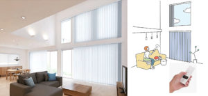 スラットの向きを変えるだけで採光・眺望をスマートにコントロールできるタテ型ブラインド