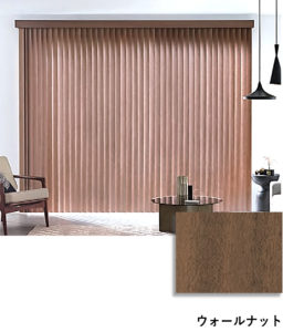 天然木の一枚板を贅沢に使用したタテ型ブラインド。リビングに最上級のこだわりと寛ぎを。